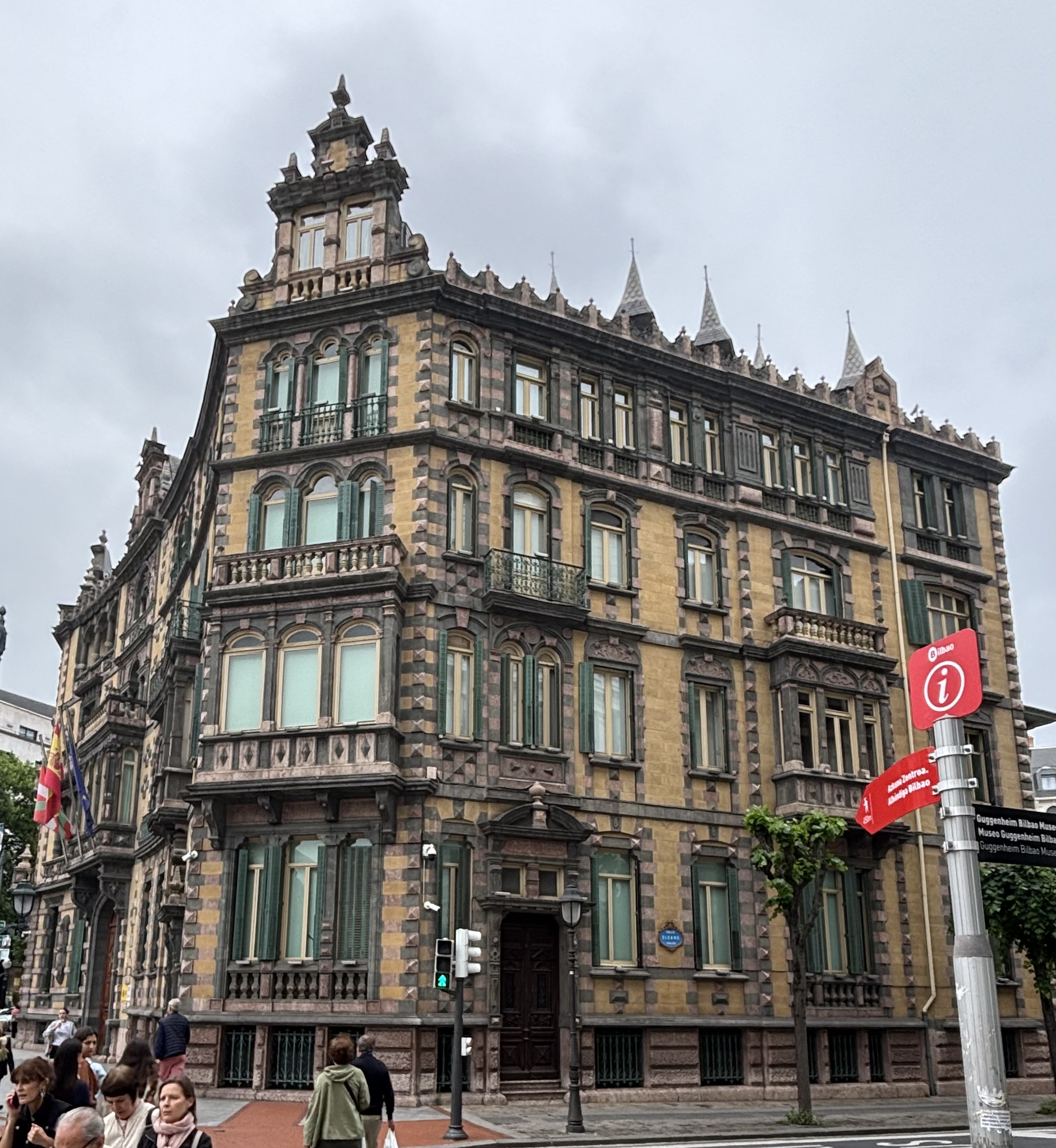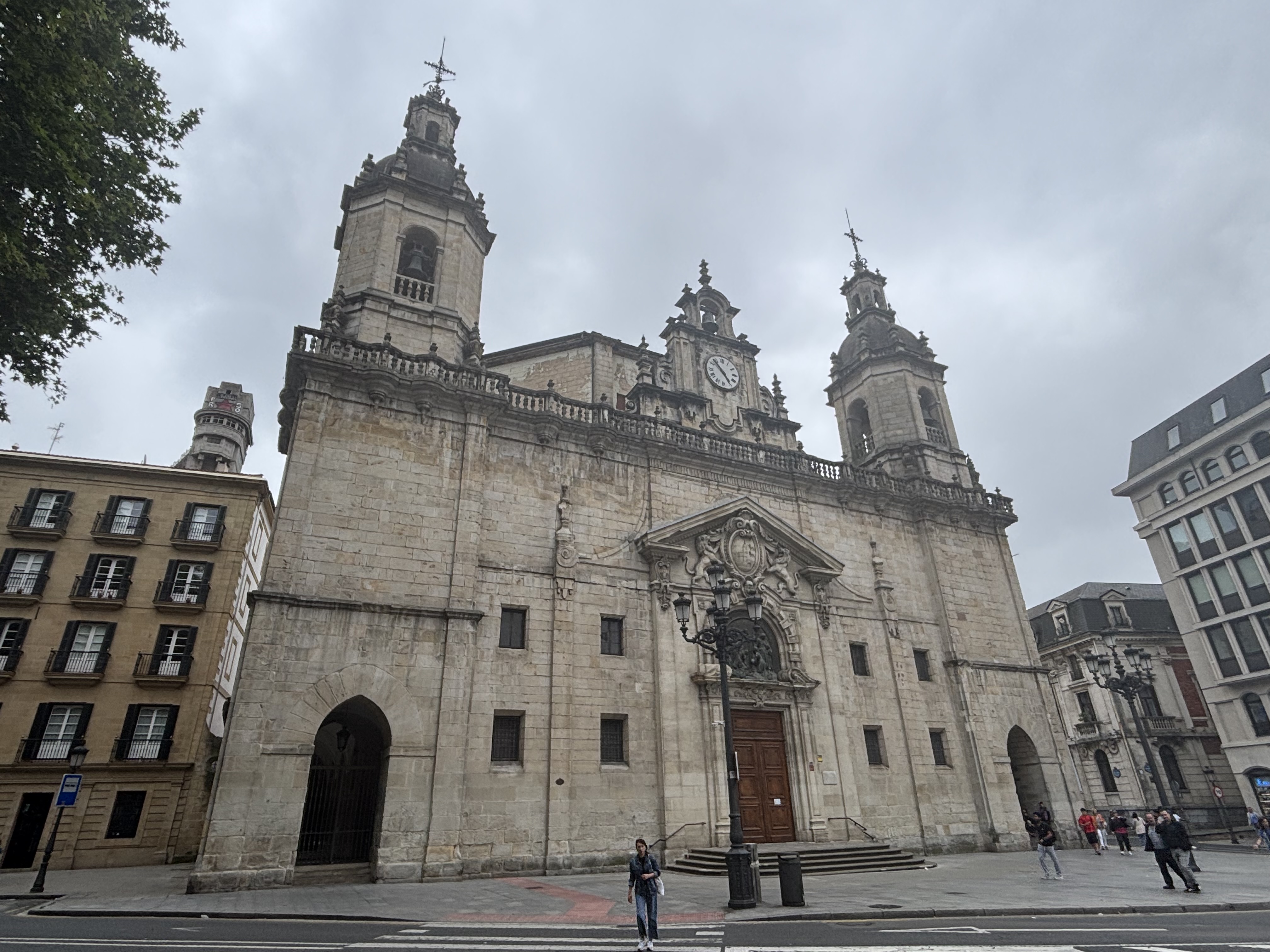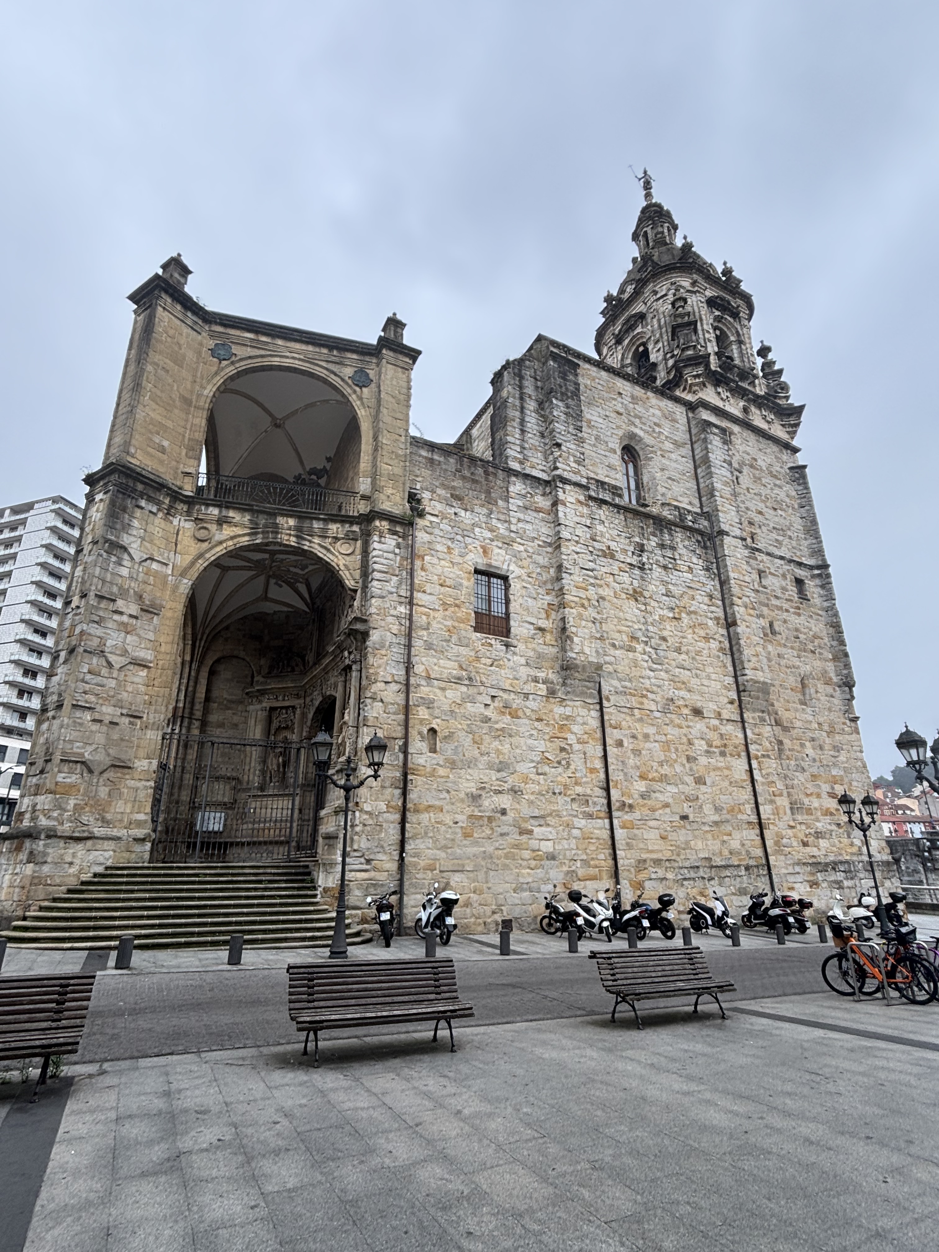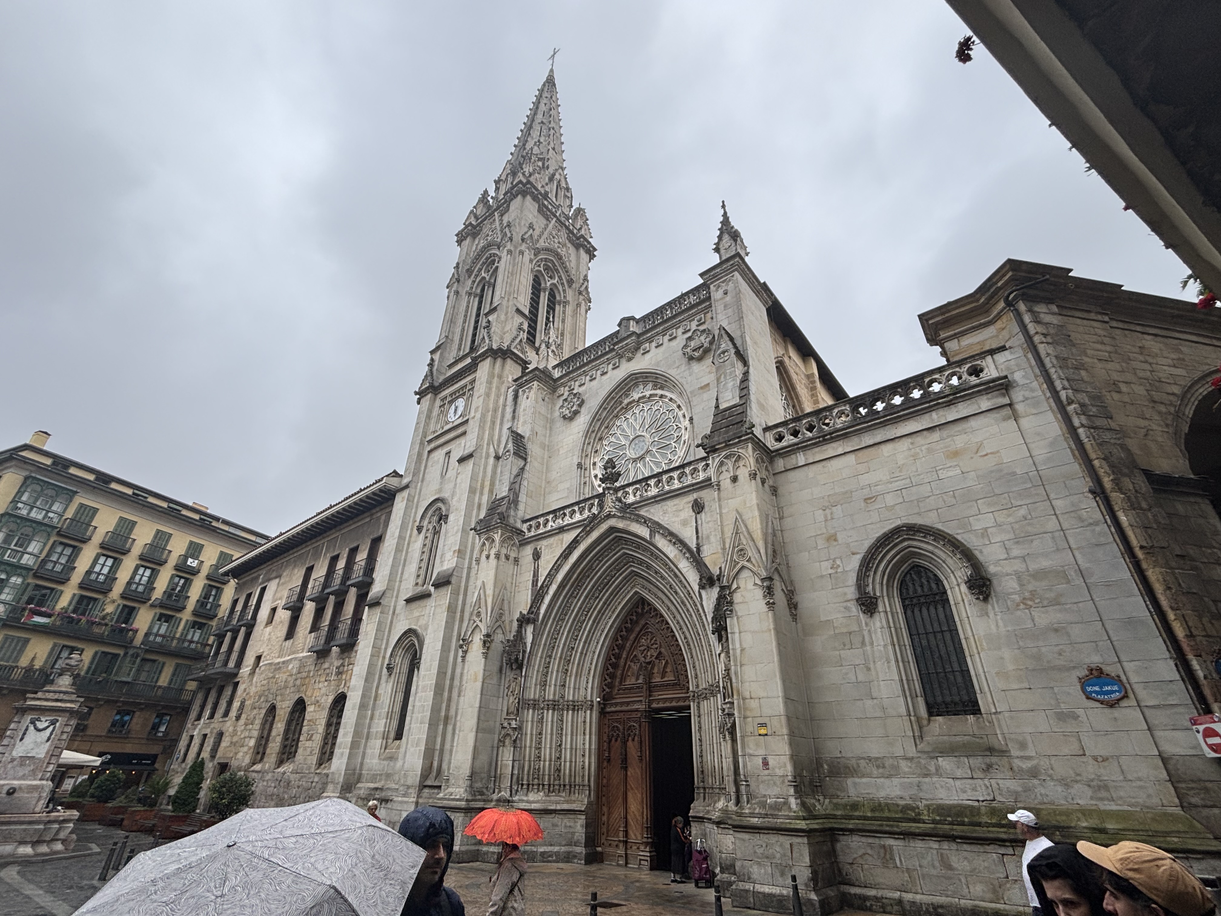 Unfortunately, we were in such a hurry to drop off our luggage at the hotel before getting our ride into town that we forgot to grab any of our rain gear or warm clothes from our bags. When we stepped out of the cab in the old town, we quickly realized that was a mistake. Because of the Uber situation noted above, we decided it would be less expensive just to buy some cheap clothes in town rather than pay for another round-trip fare. Darla found a lovely jacket that now travels with us (our first souvenir), and Stu found an $11 hoodie late in the day that now resides at the hotel lost-and-found. We’re told that the weather in Bilbao is always awful – either cold and wet or hot and humid – so we will plan accordingly if we ever return.
