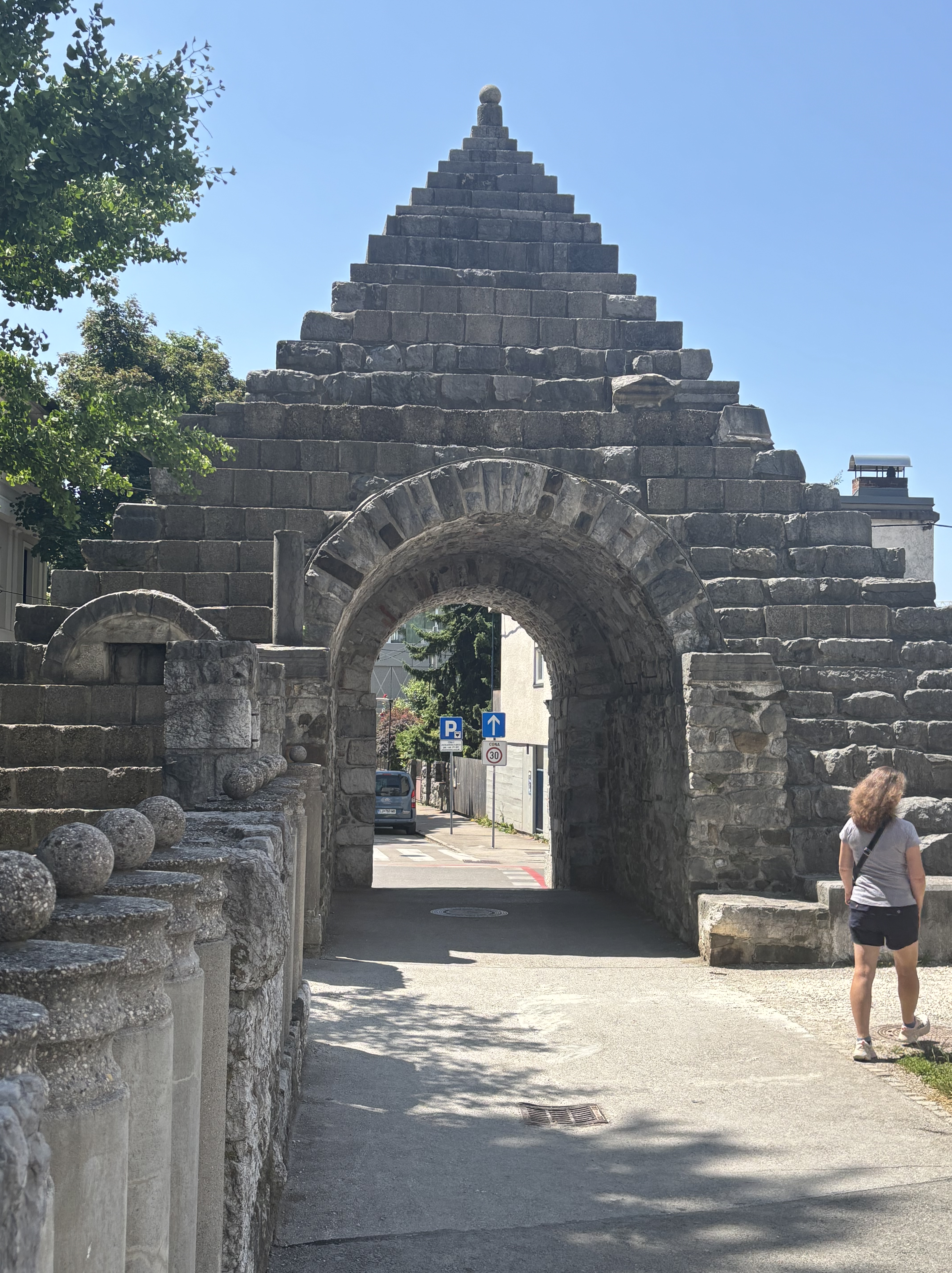 Not much is known about the Celts and earlier settlers of the region, but the locals are literally still unearthing their own history. (The world’s oldest known wooden wheel and oldest known musical instrument were discovered not far away and are now housed in local museums.) Our apartment is just inside the east wall of the ancient Roman city of Emona, which was established on the flat land on the left (west) bank on the river, and various Roman ruins are scattered around town. The Roman city was destroyed by Attila the Hun in the 5th Century, and the marshland sat empty for around a hundred years before the ancestors of the current Slovenes resettled the area.