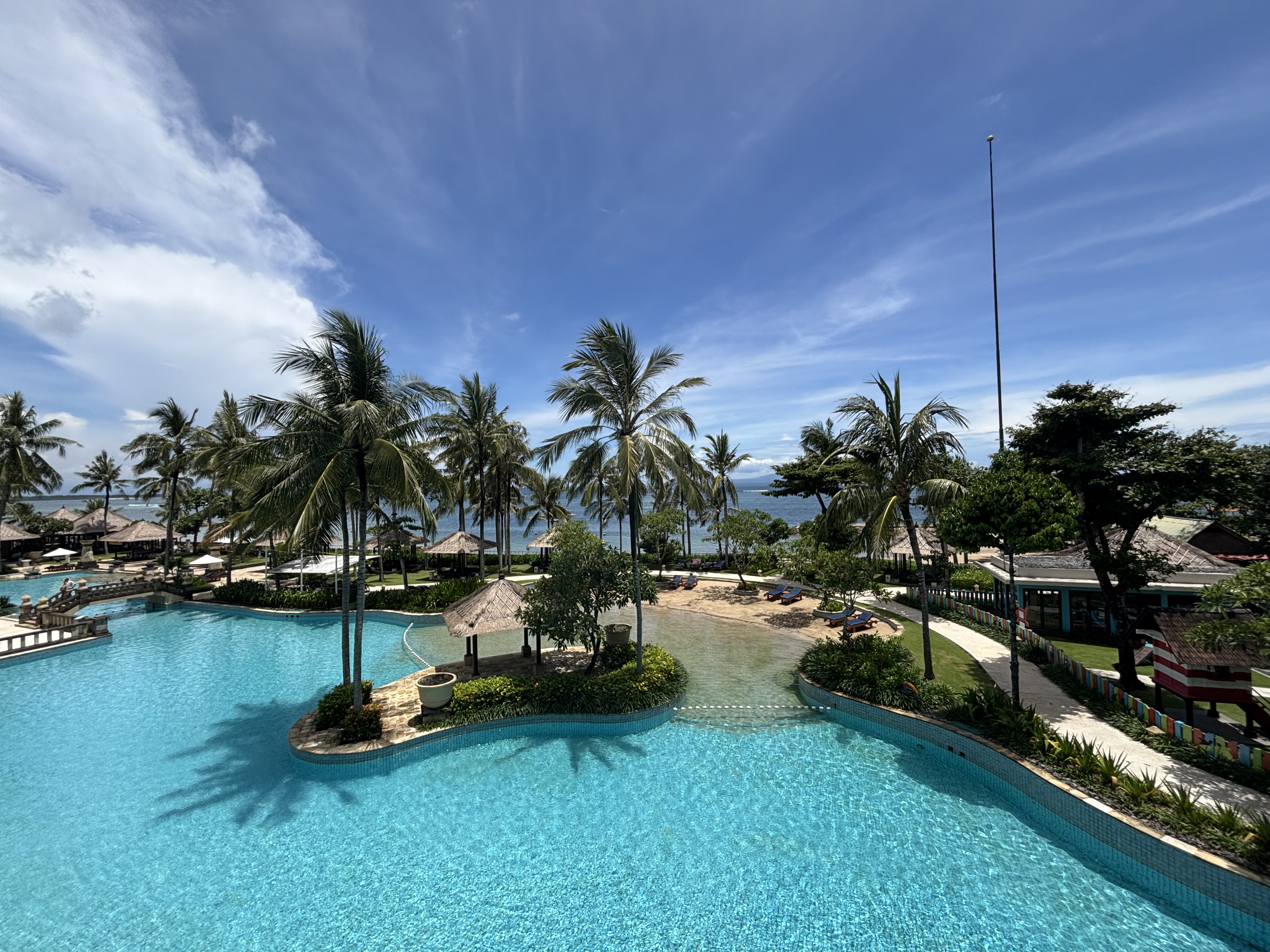 I spent two nights in an amazing ocean view room at the Conrad Bali in the Nusa Dua area thanks to an AmEx Platinum hotel credit. (I prefer to spend my first night at a hotel when arriving in the evening, so I don’t have to worry about meeting a host or figuring out a lockbox in the dark.) Nusa Dua Beach lies south of Denpasar, on the eastern side of the small peninsula that hangs off the southern edge of Bali. It is convenient to the airport thanks to a toll road across a large lagoon that also serves as a nesting ground for sea turtles. It is a great place to stay if you are looking for an upscale beach resort experience. Due to its isolation from the rest of Bali, it’s not the best place to stay if you are looking to experience local culture.