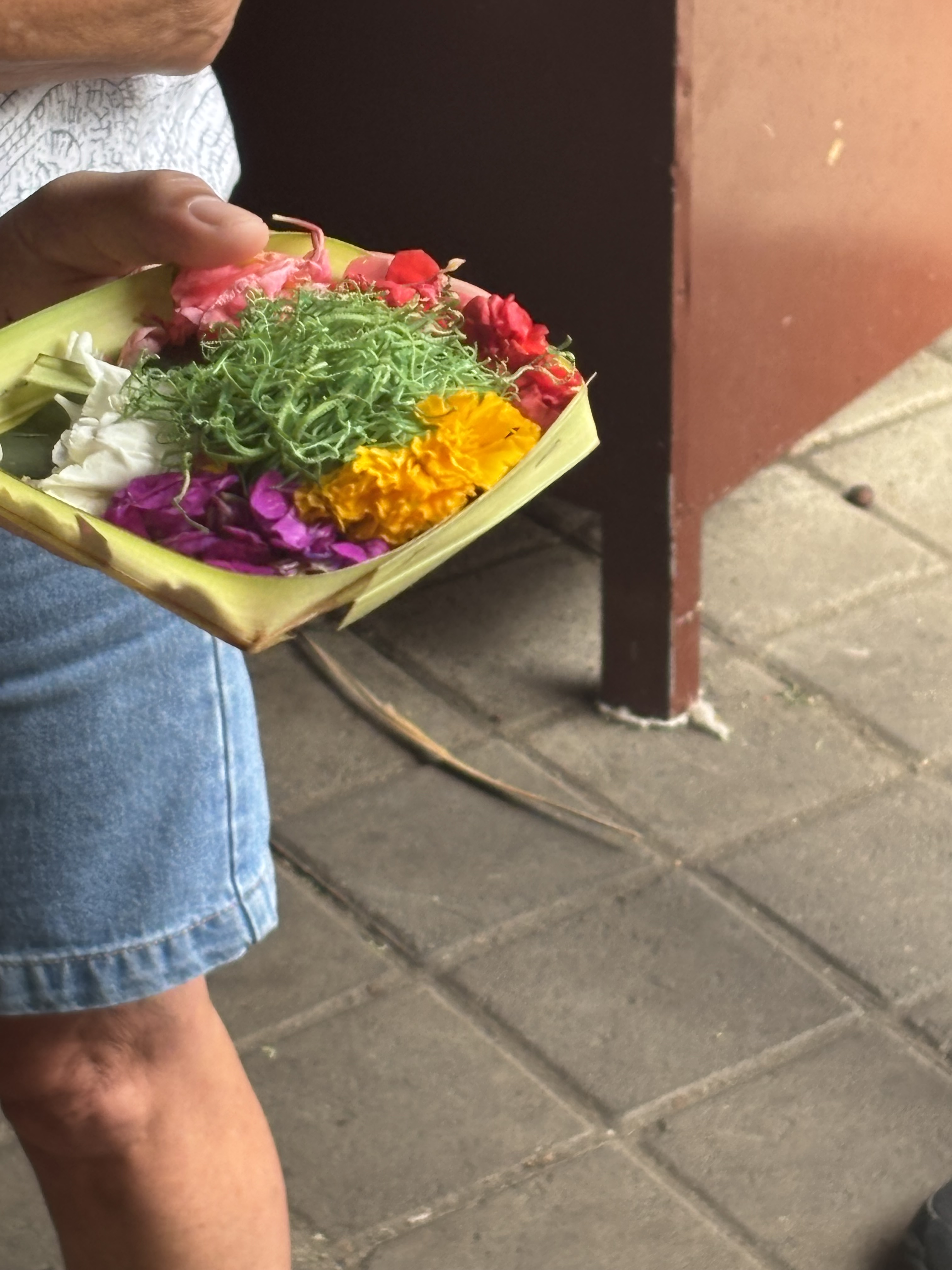 Indonesia is predominately Muslim, but most Balinese observe a unique blend of Hindu, Buddhist and indigenous beliefs. All of the locals I met described themselves as not being especially devout. That said, they still observe the custom of preparing daily offerings representing the circle of life (typically consisting of seeds, dirt, flowers, fruit and incense sprinkled with water and wrapped in a square of woven bamboo leaves) that are gently placed in front of doorways, gods and other areas where a blessing is desired. Ornately decorated temples can be found in some of the most unlikely places – perched along seaside cliffs, hidden in mountain valleys and down narrow alleyways.