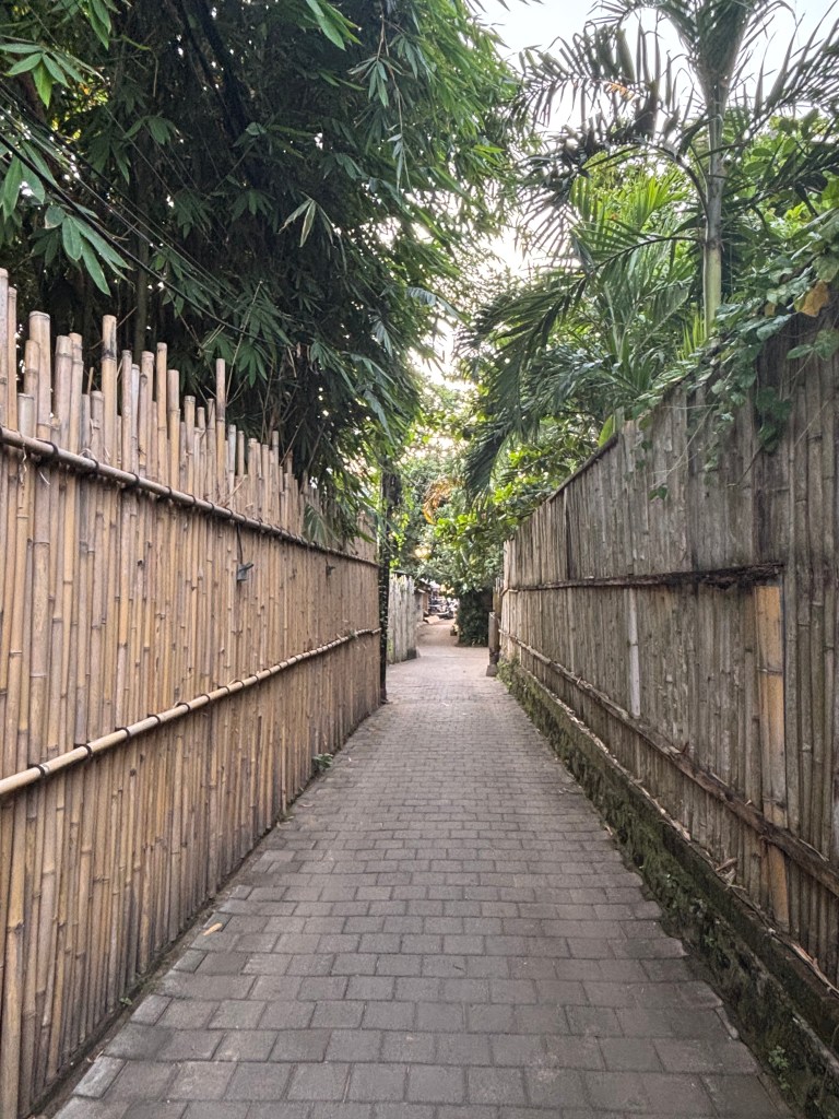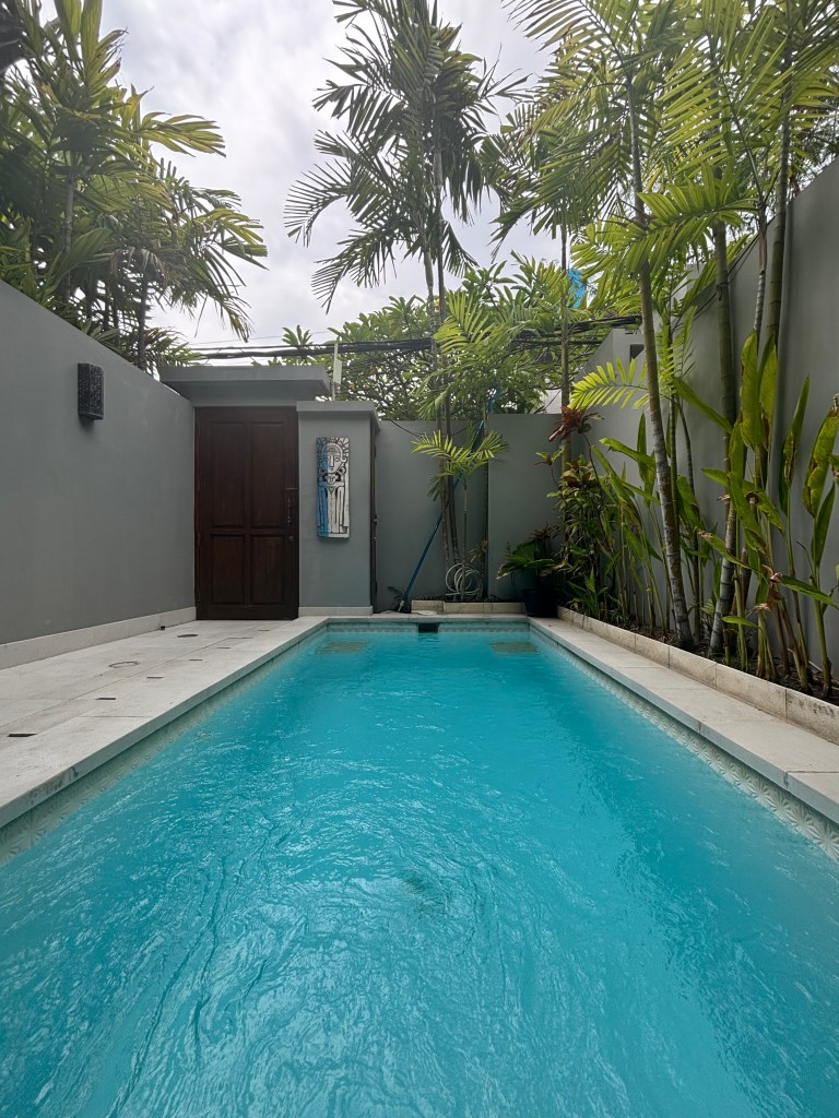 Hidden behind the busy main thoroughfares are narrow alleys lined with two-story private villas. It’s an entirely different – and delightfully peaceful – world. When researching short-term rentals in Bali, I had noticed that most of the AirBNB “guest favorite” apartments included a private swimming pool but very few of them were right on the beach. I took that as a clue and booked a modern villa with a private pool about five blocks from the beach for less than $100/night. No regrets. Tall fences ensure privacy, and there’s something to be said for having your own pool and a bamboo-lined courtyard where you can partake in the kind of indoor-outdoor living you typically only see on Bravo shows about Los Angeles real estate drama.