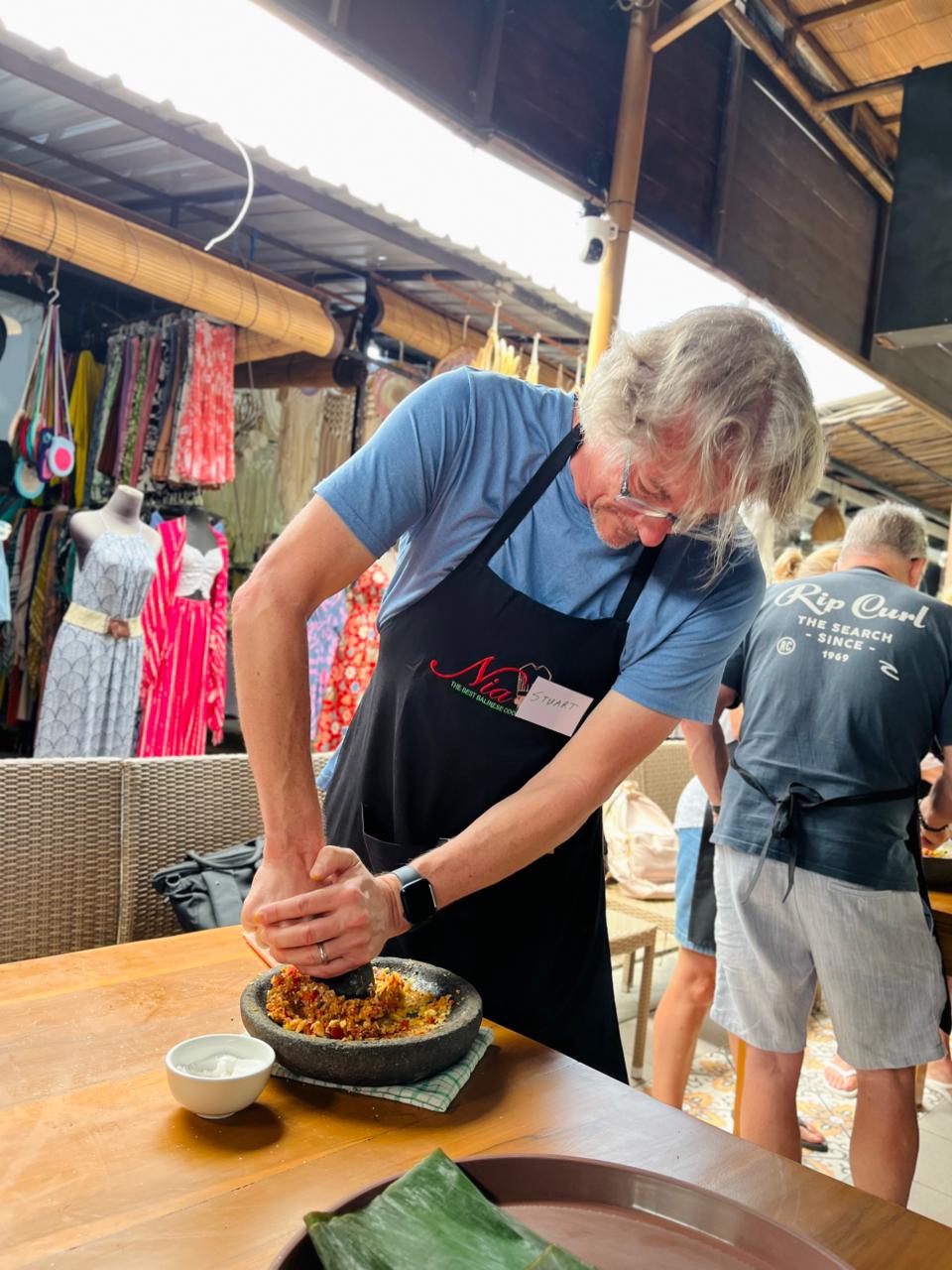 The narrow streets leading away from the beach are packed with pedestrians and people on motorbikes whizzing past a mix of boutique and name-brand retail stores, art galleries, bakeries and hipster coffee shops. I enjoyed some of the best and most affordable food of my entire trip there (including the best beef birria tacos I’ve had anywhere) and even took a class at a traditional Balinese cooking school. Shopkeepers said hello with a smile as I passed, but no one pressured me to get a massage or buy a cheap suit like I’d experienced in Phuket. Perhaps because Seminyak has become such a popular spot for digital nomads, the area had none of the annoying aggro-beach-bro element either. It felt like a very safe and moderately upscale surf town with a decidedly laid-back vibe, vaguely reminiscent of Encinitas, California.